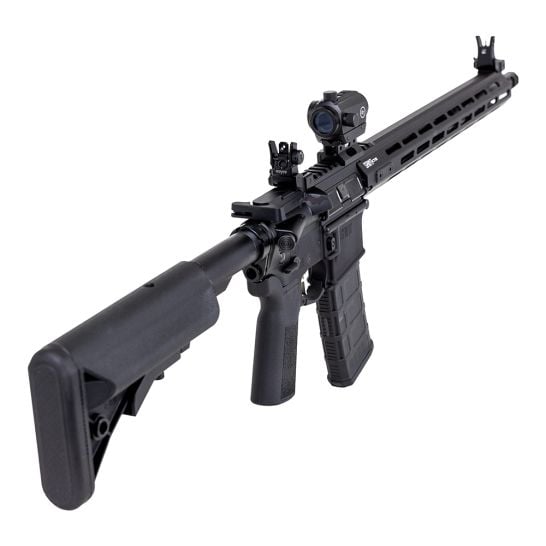 The SAINT® Victor 5.56 takes the already superb SAINT rifle and amps up the features. The full-length 15″ aluminum handguard has ample M-Lok® real estate for accessories and reaches out far enough to accommodate modern shooting styles. The mid-length gas system ensures reliable operation, smooth function and long life, while the flat trigger face lends itself to serious precision. Nickel boron fire controls help you put rounds on target every time, and B5 Systems furniture rounds out the package.