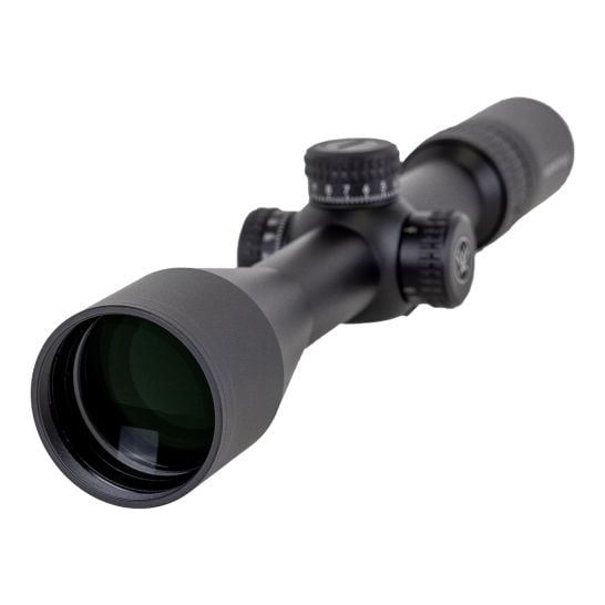 - First Focal Plane – Scale of reticle remains in proportion to the zoomed image. Constant subtensions allow accurate holdover and ranging at all magnifications.